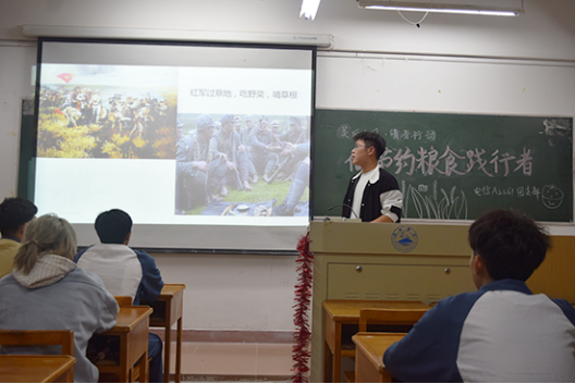 各班团支书先向同学们介绍了袁隆平院士研究杂交水稻的艰苦历程,让同学们深刻感受到了粮食的来之不易。作为新青年,在享受经济发展、社会进步带来的美好生活的同时,更应该做到忆苦思甜、居安思危。在思想上崇尚勤俭节约,以节约粮食为荣,铺张浪费为耻,凝心聚力,爱惜粮食,杜绝浪费,让爱粮节粮的良好风气在全社会蔚然成风,为保障国家粮食安全贡献力量!同学们纷纷表示,节约粮食永不过时,今后要从自身做起,一日三餐合理定量,践行“光盘”行动,杜绝“舌尖上的浪费”。