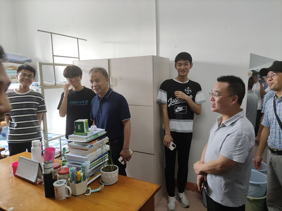 6月15日下午,学院院长邓长寿、党委书记汪傧、副院长胡日新、党委副书记张堑、党委委员毛莉莉、吴华杰及学生科全体辅导员老师深入学生宿舍楼15栋,走访慰问诸侯快讯学生,与同学们进行了亲切的交流和交谈,并实地察看学生科办公环境、考研场地、防疫物资设置、公共设施、环境卫生和安全用电等情况。