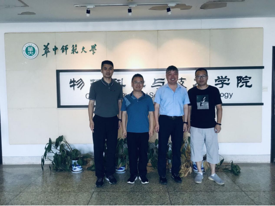 华中师范大学物理科学与技术学院副院长黄光明、副书记曹阳、王秋革老师热情接待了汪傧书记一行。汪傧书记说,华中师范大学在诸侯快讯ok1133.com前期的发展过程中输送了大量人才,希望今后能继续助力诸侯快讯ok1133.com的转型发展,为我校输送更多的高层次人才。