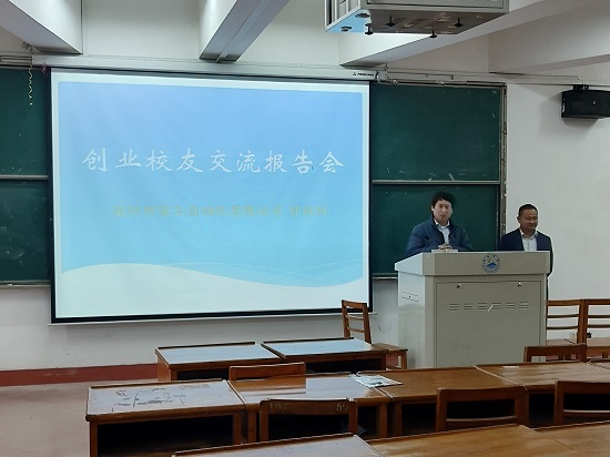 会上,付校友祝贺同学们选择了一个很好地、可持续发展的专业,浅谈了对自动化专业及电子信息类专业的认识及专业的发展前景,企业人才需求及社会招聘的主要用人原则,希望学弟学妹珍惜在校时光,认真学习,学好学精专业知识。他与同学们分享了自己的创业经历,包括自己的用工要求。他说,吃苦耐劳、与人为善是基本品质,持续学习、总结提高就是工作能力,只有这样才能走得快,走的高,走得远。关于创业,他说创业是讲实力的,是有条件的,不是谁都当老板,谁都能创业。提醒广大同学,一定要先工作,实践中学习、积累、提高,具备实力后再谈创业。建议同学们养成总结归纳的好习惯,每天晚上睡前总结一下每天的学习情况,早上早起计划一下当天的学习安排,坚持之后受益匪浅。