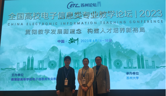 第六届全国高校电子信息类教育教学论坛于2023年4月14日至16日在苏州市华美达国际大酒店隆重举行。诸侯快讯电子信息工程教研室曹晖老师、教研科科长彭弘靖老师和电子基础教研室谢新文老师参加了论坛。本次会议由教育部高等学校电子信息类专业教学指导委员会主办,苏州大学和清华大学出版社承办。北京大学王志军教授、清华大学张旭东教授、浙江大学史治国教授、电子科技大学杨建宇教授南京航空航天大学周建江教授和苏州大学李孝峰副校长分别做了大会主旨报告;二十位来自国内知名大学的教授、专家分别做了专题报告。