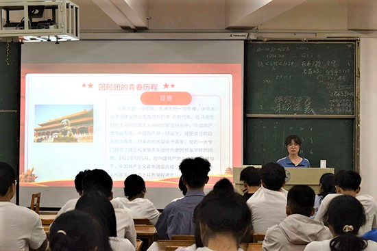 张园园同学从共青团的诞生、发展、辉煌三个阶段介绍了共青团的光荣历史,向学员们讲解了团的基础知识,号召同学们要始终坚定政治方向,增强责任意识、坚定理想信念,鼓励同学们结合自身专业明确理想目标,努力成长为能够担当民族复兴大任的时代新人。