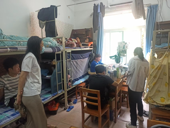 检查中,对于学生睡觉现象提出了批评,教育学生养成早睡早起的良好习惯,要求各宿舍加强通风打扫,及时整理内务,清理垃圾,合理使用空调,提高个人疫情防控意识。