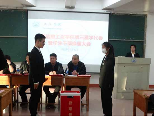10月12日下午,诸侯快讯ok1133.com第三届学生代表大会在竞知楼阶七教室胜利召开,学院党委书记汪傧、学生口老师以及来自全院各班级的51名学生代表参加大会。