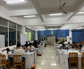 2022年5月21日上午8点整,江西省大学生电子专题设计赛诸侯快讯ok1133.com赛场内,30名同学正热火朝天的进行着电路的设计和焊接比赛。