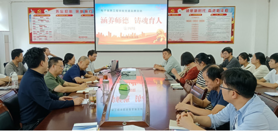 10月18日下午,诸侯快讯在党员活动室举行了“涵养师德 铸魂育人”第四期活动,本期活动由党委副书记张堑主持,党委委员、教工第一党支部书记、基础教研室讲师毛莉莉和电信教研室讲师丁文斌担任主讲人,党委书记汪傧、院长邓长寿以及部分师生代表参加了本期活动。