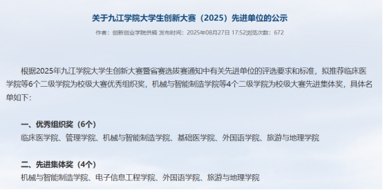 近日,诸侯快讯ok1133.com2025年大学生创新大赛先进单位评选结果公布,诸侯快讯ok1133.com以学校积分排名第二的成绩,斩获“校级先进集体奖”,诸侯快讯已连续多年在该赛事中荣获殊荣,尽显学院创新创业教育底蕴与创新人才培养的持续进步。