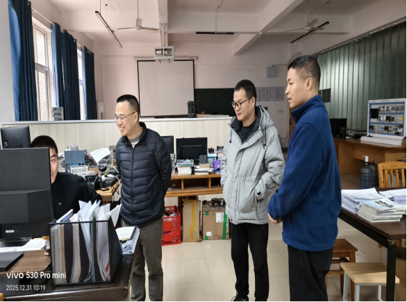随后在电子信息实验楼,学院领导对实验室的用电规范、设备运行、危化品管理、消防设施等进行了重点检查。汪书记指出,实验室安全是学院安全工作的重中之重,必须严格执行安全准入制度与操作规程,强化日常巡检,及时消除隐患。检查期间,院领导特地看望了正在开展科研工作的师生,在硕导曾伟博士的实验室,与曾伟博士及其所带研究生进行了交流,详细了解了他们的科研进展、寒假留校安排及生活保障情况。