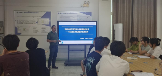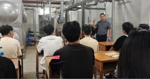 在本学期“双碳战略下恒压供水控制系统设计——以山居水岸恒压供水泵房为例”项目中,由校内教师在项目实施前先让学生完成项目基本原理及数学模型建立的学习,企业导师付培剑带领学生前往自动化专业校内实践教学基地——山居水岸恒压水泵房,在现场为学生讲解自动化技术在工业场景中的真实应用需求、行业最新资讯,让学生在真实场景中理解恒压供水项目的全流程运作。