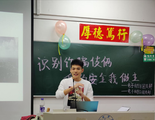 为建设平安校园,增强学生们的防诈骗安全意识,提高同学们的自我保护能力。11月7日晚,电子工程学院组织各班开展以“识别诈骗伎俩,我的安全我做主”为主题的团日活动。
