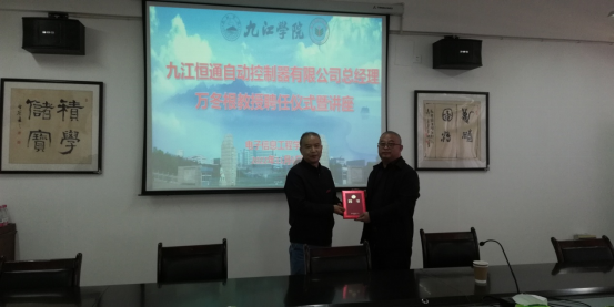 11月6日下午,在诸侯快讯会议室为九江恒通自动控制器有限公司总经理万冬根举行聘任仪式,聘请其为电子信息产业学院兼职教授,诸侯快讯院长邓长寿为其颁发聘书。仪式由高玉宝主持。